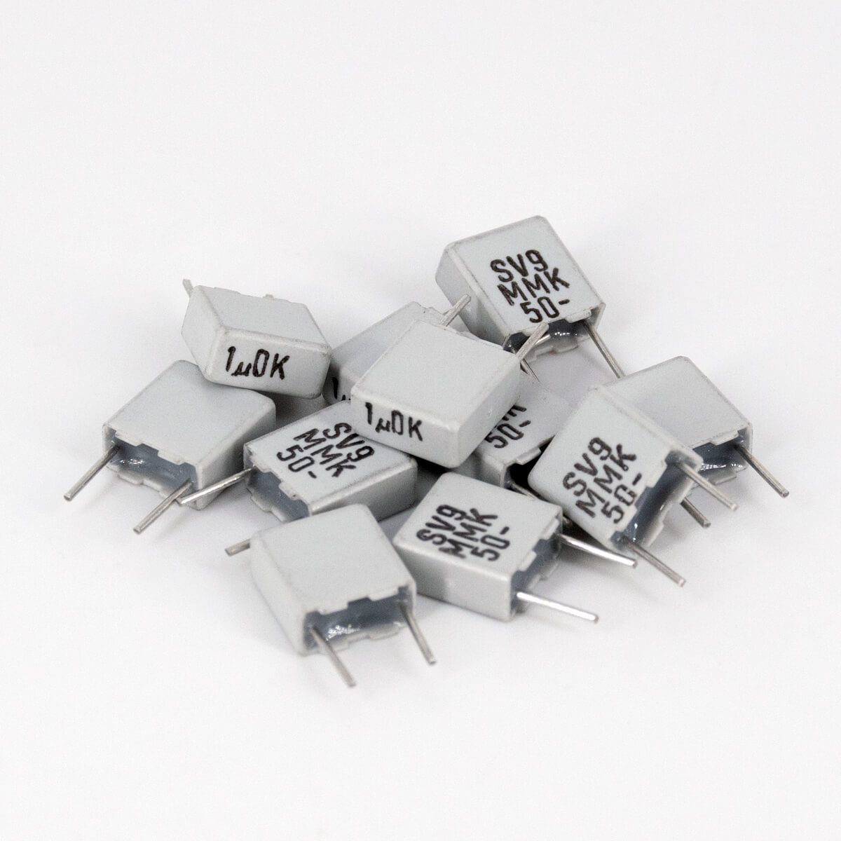 These are a direct substitute for the WIMA MKS2 1μF capacitors used in many of our projects, which have been temporarily discontinued due to a supplier shortage. See our news article for more information.